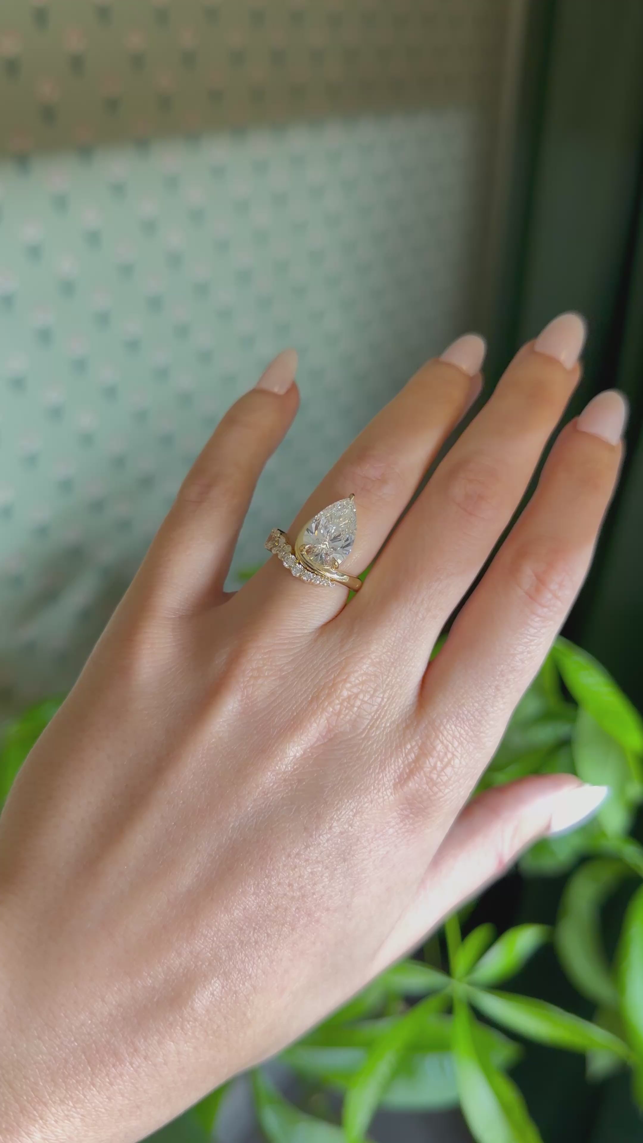 Inspired by the beauty and versatility of San Francisco, this handcrafted ring features an pear diamond paired with oval and round accent diamonds. The sculptural, fluid band mirrors the city’s mix of nature, structure, and movement, creating a piece that is very elegant and unique.